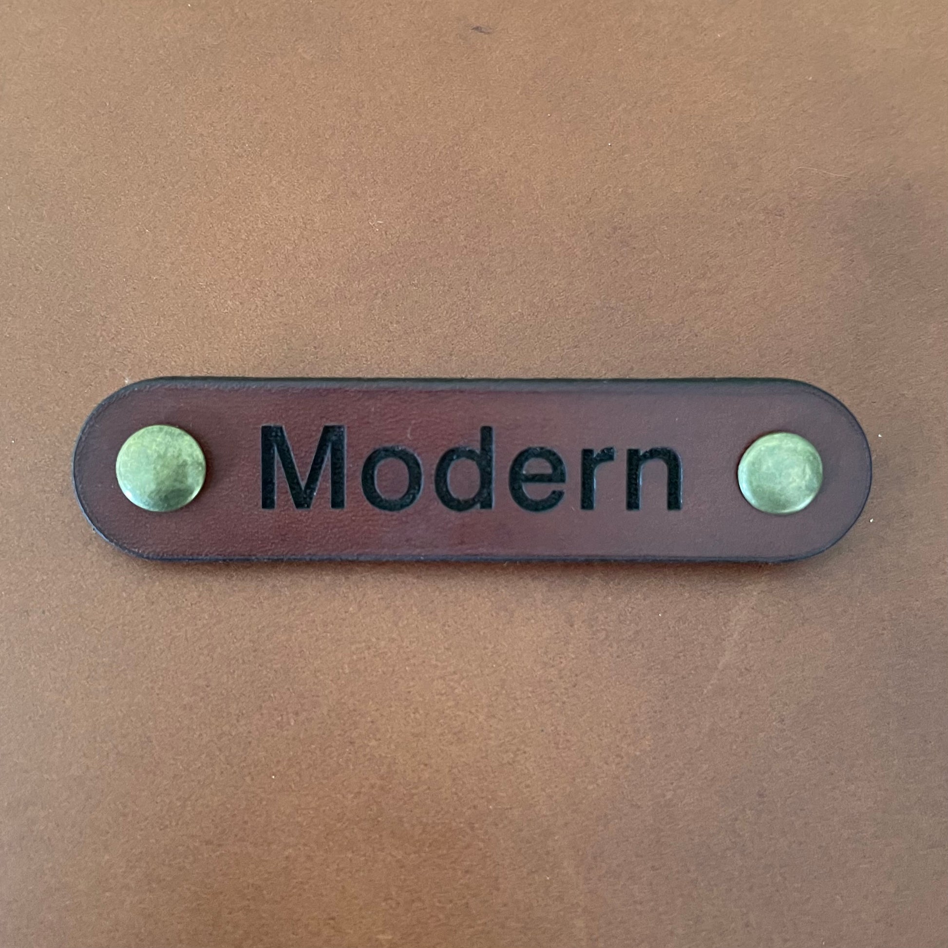 We offer a custom personalisation service so that you can make your backpack, messenger bag or apron just that little bit more special. Our name tags are made using brown leather to match your bag or apron. We laser engrave your wording and then rivet it to your item.